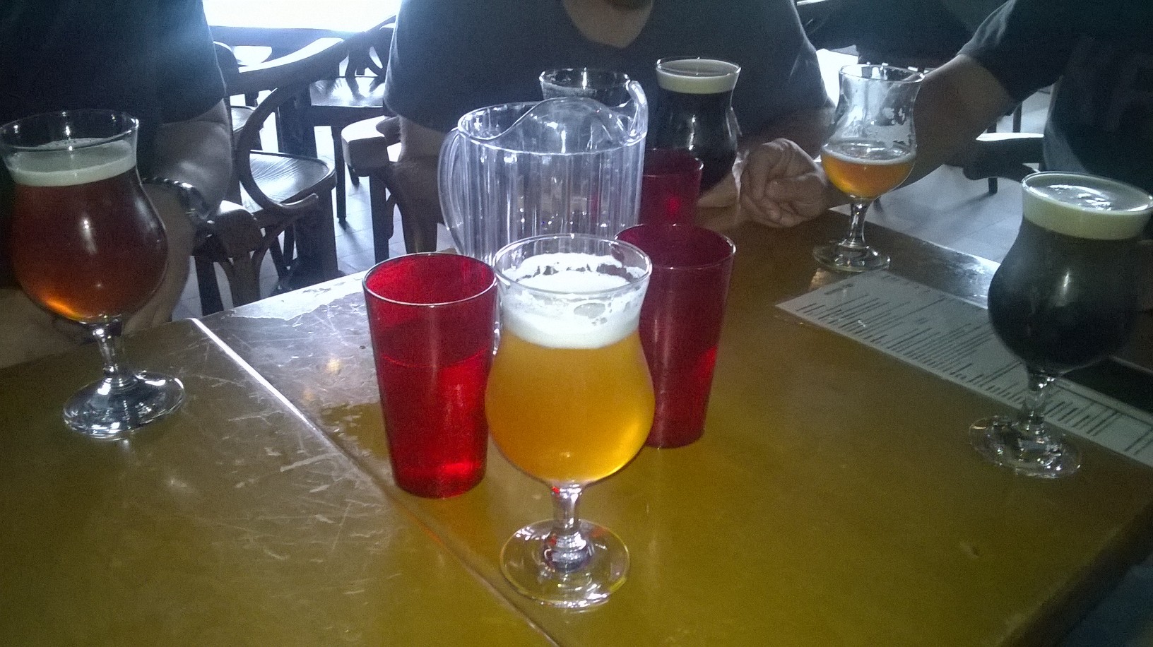 C’est donc au Brouhaha que les Houblongols se sont donné rendez-vous. Il n’était pas 13H00 et pourtant Pousty avait déjà commandé sa première consommation (Cat également, ça vous surprend?) Quand je les ai rejoints, mon choix s’est porté sur la Tribale IPA du Brouhaha. Ça commençait fort avec cette bière aux agrumes musclés et amers. On célèbre le IPA DAY ou on ne le célèbre pas, hein? 6,8% d’alcool, IBU élevé, fraîcheur en bouche, miam. Dubby est ensuite arrivé et a englouti son verre de Neige Folle pour s’assurer de commander son deuxième verre en même temps que nous. Pendant ce temps, une rumeur courait en ville. Un petit homme frisé déambulait dans les rues de Rosemont en maudissant Google Map entre chaque salve de postillons. Une vieille dame l’aurait calmé et encouragé à poursuivre son chemin jusqu’au temple du houblon…
